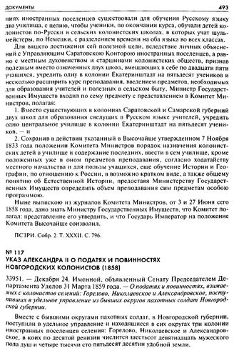 Указ Александра II о податях и повинностях Новгородских колонистов (1858). 33951. — Декабря 24. Именной, объявленный Сенату Председателем Департамента Уделов 31 Марта 1859 года. — О податях и повинностях, взимаемых с колонистов селений: Горелово, Николаевское и Александровское, поступивших в удельное управление из бывших округов пахотных солдат Новгородской губернии