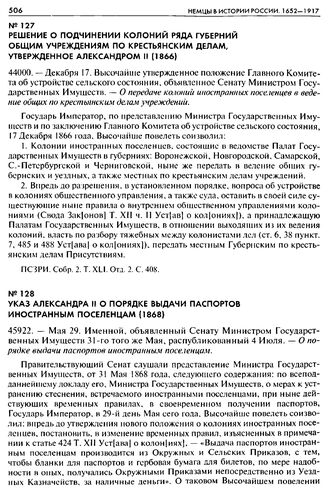 Решение о подчинении колоний ряда губерний общим учреждениям по крестьянским делам, утвержденное Александром II (1866). 44000. — Декабря 17. Высочайше утвержденное положение Главного Комитета об устройстве сельского состояния, объявленное Сенату М...