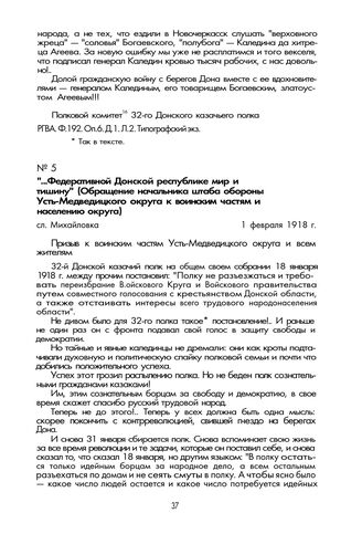 «...Федеративной Донской республике мир и тишину» (Обращение начальника штаба обороны Усть-Медведицкого округа к воинским частям и населению округа). Сл. Михайловка, 1 февраля 1918 г.