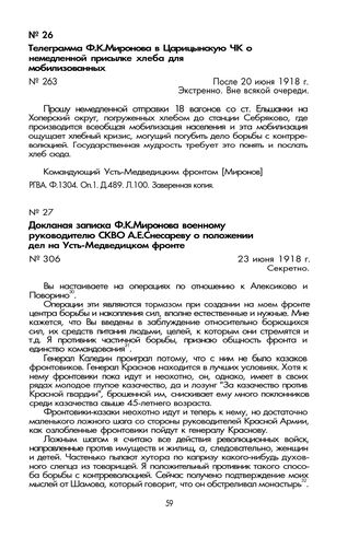 Главная Серия «Россия. XX век. Документы» Филипп Миронов. Тихий Дон в 1917-1921 Телеграмма Ф.К. Миронова в Царицынскую ЧК о немедленной присылке хл...