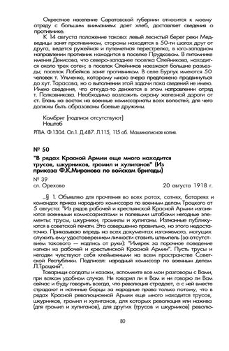 «В рядах Красной Армии еще много находится трусов, шкурников, громил и хулиганов» (Из приказа Ф.К. Миронова по войскам бригады). Сл. Орехово, 20 августа 1918 г.