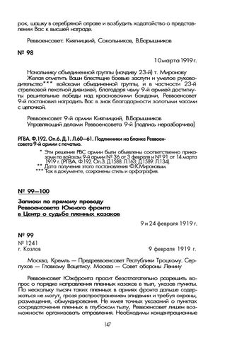 РГВА. Ф. 192. Оп. 6. Д. 1. Л. 60—61. Подлинники на бланке Реввоенсовета 9-й армии с печатью.