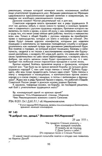 «В добрый час, донцы!..» (Воззвание Ф.К. Миронова). 29 мая 1919 г.