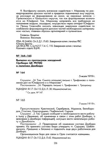 Выписка из протокола заседания Оргбюро ЦК РКП(б) о политике Донбюро. 5 июля 1919 г. // РЦХИДНИ. Ф. 17. Оп. 112. Д. 6. Л. 38. Машинописный экз.