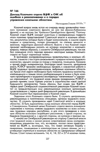 Доклад Казачьего отдела ВЦИК в СНК об ошибках в расказачивании и о порядке управления казачьими областями. Не позднее 5 июля 1919 г.