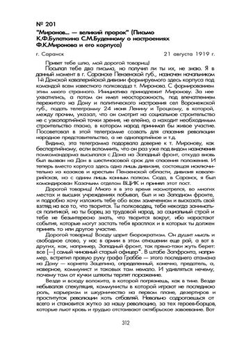 «Миронов... — великий пророк» (Письмо К.Ф. Булаткина С.М. Буденному о настроениях Ф.К. Миронова и его корпуса). Г. Саранск, 21 августа 1919 г.