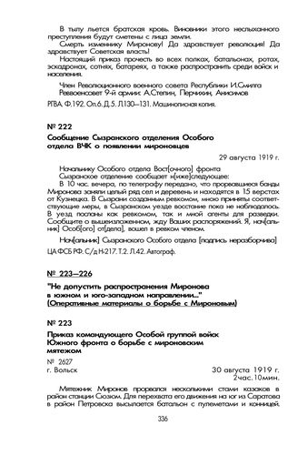 «Не допустить распространения Миронова в южном и юго-западном направлении...» (Оперативные материалы о борьбе с Мироновым). Приказ командующего Особой группой войск Южного фронта о борьбе с мироновским мятежом. Г. Вольск, 30 августа 1919 г.