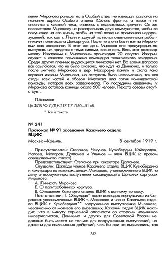 Главная Серия «Россия. XX век. Документы» Филипп Миронов. Тихий Дон в 1917-1921 Протокол № 91 заседания Казачьего отдела ВЦИК. Москва, 8 сентября 1...