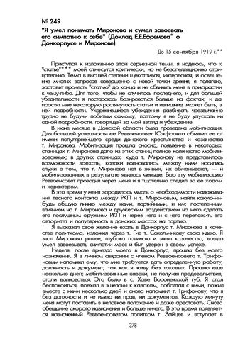 «Я умел понимать Миронова и сумел завоевать его симпатию к себе» (Доклад Е.Е. Ефремова о Донкорпусе и Миронове). До 15 сентября 1919 г.