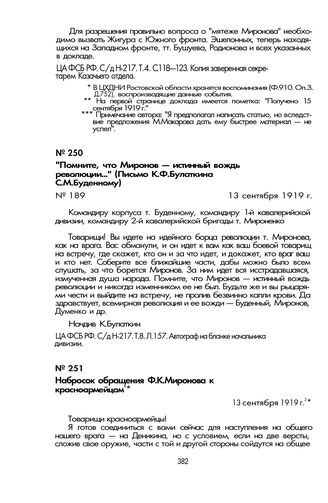 Набросок обращения Ф.К. Миронова к красноармейцам. 13 сентября 1919 г.