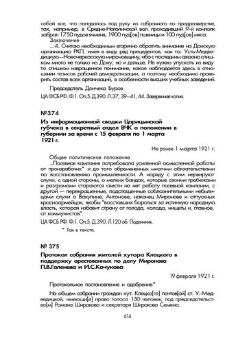 Из информационной сводки Царицынской губчека в секретный отдел ВЧК о положении в губернии за время с 15 февраля по 1 марта 1921 г. Не ранее 1 марта 1921 г.