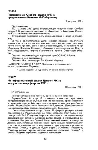 Из информационной сводки Донской ЧК за вторую половину февраля 1921 г. 10 марта 1921 г. // ЦА ФСБ РФ. Ф. 1. Оп. 5. Д. 390. Л. 1, 4 ,5. Заверенная копия.