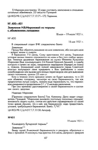 Заявление Н.В. Мироновой из тюрьмы с объявлением голодовки. 18 мая 1921 г.