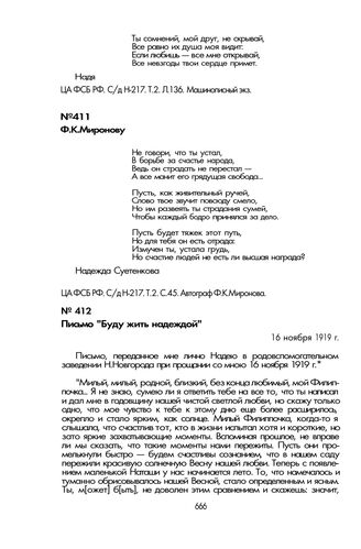 Письма Н.В. Суетенковой, адресованные Ф.К. Миронову. Письмо «Буду жить надеждой». 16 ноября 1919 г.