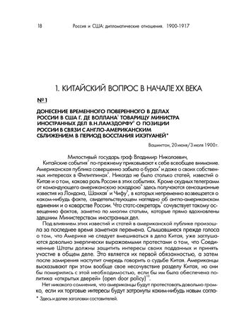 Донесение временного поверенного в делах России в США Г. де Воллана товарищу министра иностранных дел В.Н.Ламздорфу о позиции России в связи с англо-американским сближением в период восстания ихэтуаней. Вашингтон, 20 июня/3 июля 1900 г. // Ф. Канцелярия МИД. Оп. 470. 1900 г. Д. 109. Т. 1. Л. 186-187об. Подлинник.