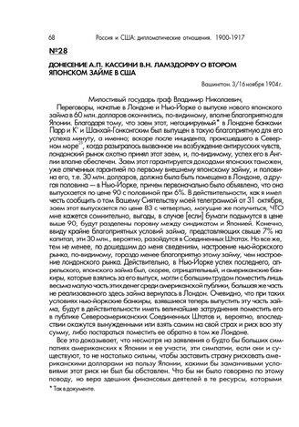 Донесение А.П. Кассини В.Н. Ламздорфу о втором японском займе в США. Вашингтон, 3/16 ноября 1904 г.