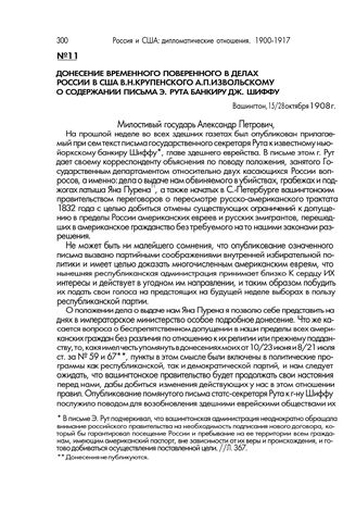 Донесение временного поверенного в делах России в США В.Н. Крупенского А.П. Извольскому о содержании письма Э. Рута американскому банкиру Дж. Шиффу. Вашингтон, 15/28 октября 1908 г. // Ф. Канцелярия МИД. Оп. 470. 1908 г. Д. 139. Л. 365-367. Подлинник.