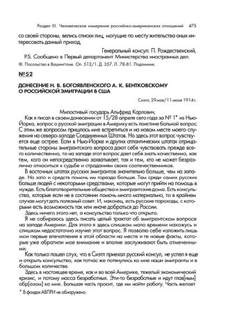 Донесение Н.В. Богоявленского А.К. Бентковскому о российской эмиграции в США. Сиэтл, 29 мая/11 июня 1914 г. // Ф. Тихоокеанский стол. Оп. 487. Д. 1439. Л. 39-42об. Копия.