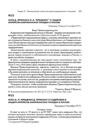Нота М.И. Терещенко Д. Фрэнсису о содействии в защите интересов американских граждан в России. Петроград, 6/19 сентября 1917 г.