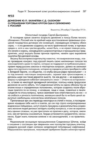 Донесение Ю.П. Бахметева С.Д. Сазонову о стремлении торговых кругов США к сближению с Россией. Вашингтон, 29 ноября/12 декабря 1913 г.