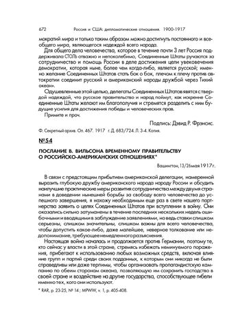 Главная Серия «Россия. XX век. Документы» Россия и США. Дипломатические отношения. 1900-1917 Послание В. Вильсона Временному правительству о российско-американс...