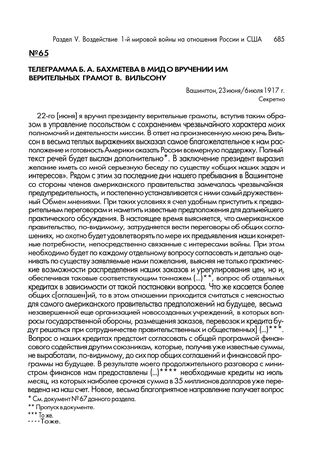 Телеграмма Б.А. Бахметева в МИД о вручении им верительных грамот В. Вильсону. Вашингтон, 23 июня/6 июля 1917 г. // Ф. Архив «Война». Оп. 473. Д. 170. Л. 25-27. Копия.