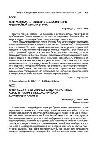 Главная Серия «Россия. XX век. Документы» Россия и США. Дипломатические отношения. 1900-1917 Телеграмма М.И. Терещенко Б.А. Бахметеву о Чрезвычайной миссии Э. Р...