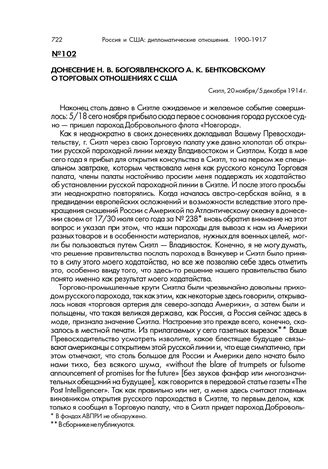 Главная Серия «Россия. XX век. Документы» Россия и США. Дипломатические отношения. 1900-1917 Донесение Н.В. Богоявленского А.К. Бентковскому о торговых отношени...