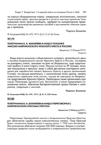 Телеграмма Б.А. Бахметева в МИД о переговорах с Американским Красным Крестом. Вашингтон, 7/20 августа 1917 г.