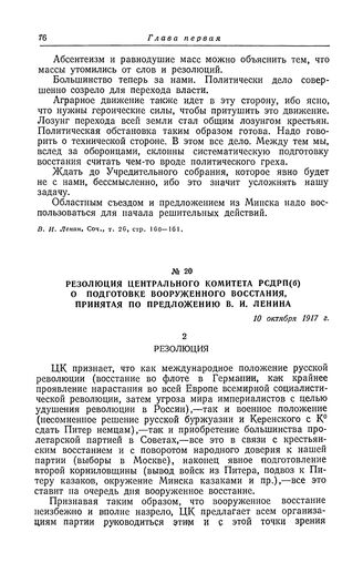 Резолюция Центрального Комитета РСДРП(б) о подготовке вооруженного восстания, принятая по предложению В. И. Ленина. 10 октября 1917 г. // В. И. Ленин, Соч., т. 26, стр. 162.
