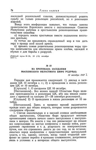 Из протокола заседания Московского областного бюро РСДРП(б). 14 октября 1917 г. // «Документы Великой пролетарской революции», т. II, М. 1948, стр. 29—30.