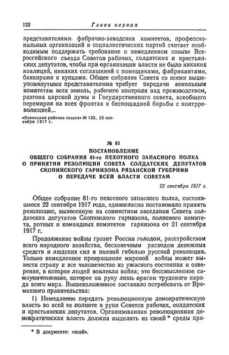 Главная Второй Всероссийский съезд Советов рабочих и солдатских депутатов Документы Постановление общего собрания 81-го пехотного запасного полка о при...