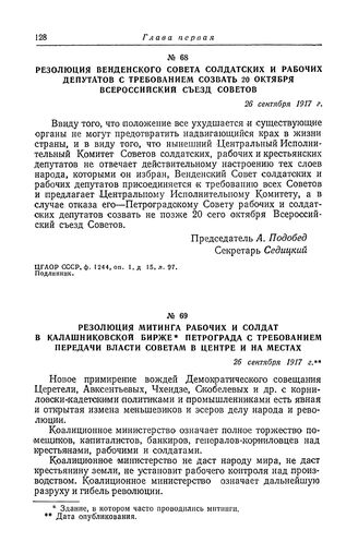 Резолюция Венденского Совета солдатских и рабочих депутатов с требованием созвать 20 октября Всероссийский съезд Советов. 26 сентября 1917 г. // ЦГАОР СССР, ф. 1244, оп. 1, д. 15, л. 97. Подлинник.