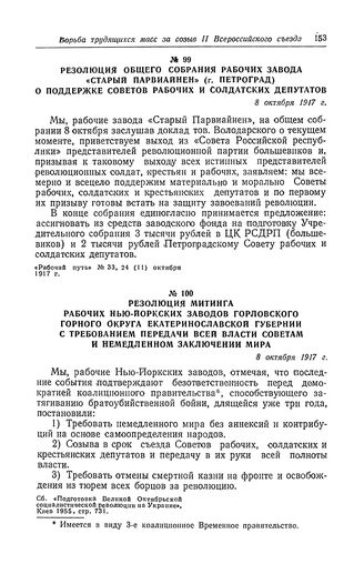Резолюция митинга рабочих Нью-Йоркских заводов Горловского горного округа Екатеринославской губернии с требованием передачи всей власти Советам и немедленном заключении мира. 8 октября 1917 г.