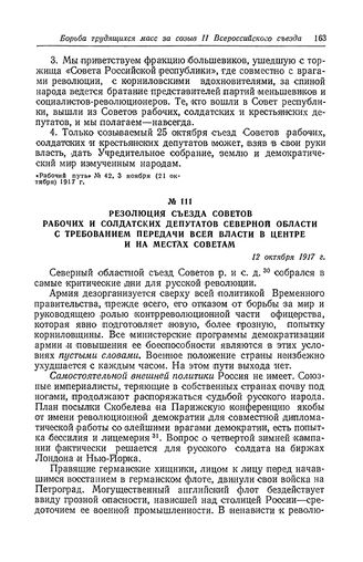 Резолюция съезда Советов рабочих и солдатских депутатов Северной области с требованием передачи всей власти в центре и на местах Советам. 12 октября 1917 г. // «Рабочий путь» № 35, 26 (13) октября 1917 г.