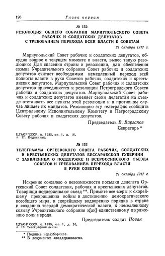 Резолюция общего собрания Мариупольского Совета рабочих и солдатских депутатов с требованием перехода всей власти к Советам. 21 октября 1917 г.