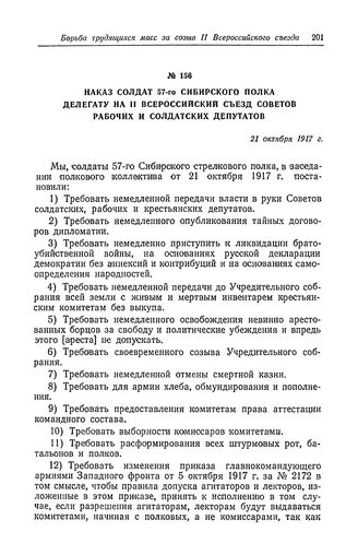 Наказ солдат 57-го Сибирского полка делегату на II Всероссийский съезд Советов рабочих и солдатских депутатов. 21 октября 1917 г.