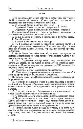 Анкета большевистской фракции II Всероссийского съезда Советов рабочих и солдатских депутатов. Барнаульский Совет рабочих и солдатских депутатов и Исполнительный комитет Совета рабочих, солдатских и крестьянских депутатов Алтайской губернии // ЦГАОР СССР, ф. 1235, оп. 1, д. 9, л. 3а—4 об. Подлинник.