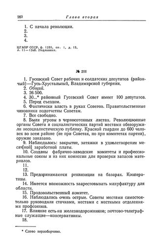 Анкета большевистской фракции II Всероссийского съезда Советов рабочих и солдатских депутатов. Гусевский Совет рабочих и солдатских депутатов (районный) — Гусь-Хрустальный, Владимирской губернии // ЦГАОР СССР, ф. 1235, оп. 1, д. 9, л. 17—18 об. Подлинник.