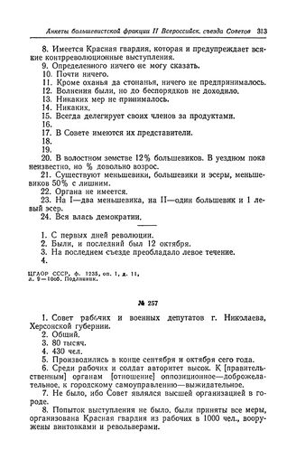 Анкета большевистской фракции II Всероссийского съезда Советов рабочих и солдатских депутатов. Совет рабочих и военных депутатов г. Николаева, Херсонской губернии // ЦГАОР СССР, ф. 1235, оп. 1, д. 12, л. 29—30 об. Подлинник.