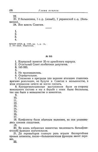 Анкета большевистской фракции II Всероссийского съезда Советов рабочих и солдатских депутатов. Корпусной комитет 35-го армейского корпуса // ЦГАОР СССР, ф. 1235, оп. 1, д. 14, л. 17б—18б об. Подлинник.