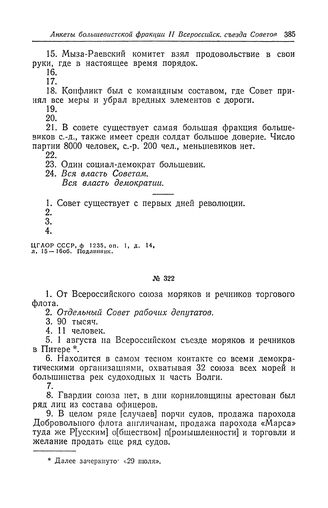 Анкета большевистской фракции II Всероссийского съезда Советов рабочих и солдатских депутатов. Всероссийский союз моряков и речников торгового флота // ЦГАОР СССР, ф. 1235, оп. 1, д. 13, л. 37—38 об. Подлинник.