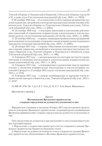 Приложение к журналу № 3. Приложение к пункту 3. Проект. Постановление Временного правительства о порядке определения на должности и увольнения от них // ГА РФ. Ф. 1792. Оп. 1. Д. 2. Л. 9–9 об. Копия. Машинопись; Д. 12. Л. 9–9 об. Зав. копия. Машинопись.