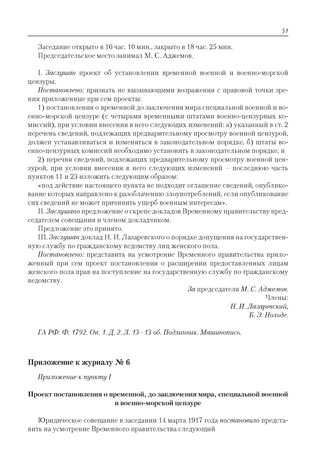 Приложение к журналу № 6. Приложение к пункту I. Проект постановления о временной, до заключения мира, специальной военной и военно-морской цензуре