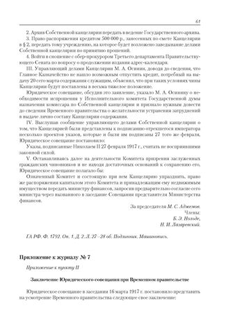 Приложение к журналу № 7. Приложение к пункту II. Заключение Юридического совещания при Временном правительстве