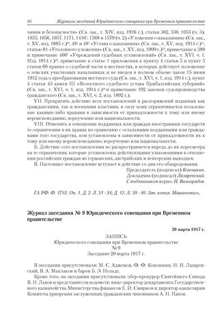 Журнал заседания № 9 Юридического совещания при Временном правительстве. 20 марта 1917 г.
