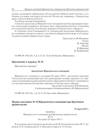 Журнал заседания № 13 Юридического совещания при Временном правительстве. 27 марта 1917 г.