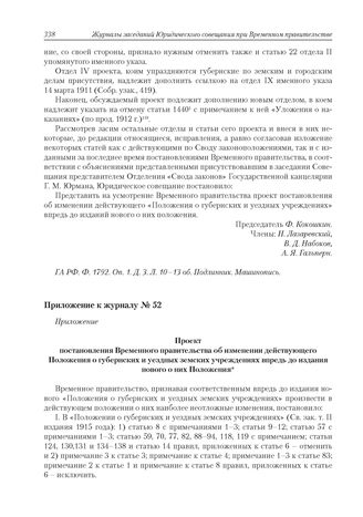 Приложение к журналу № 52. Проект постановления Временного правительства об изменении действующего Положения о губернских и уездных земских учреждениях впредь до издания нового о них Положения
