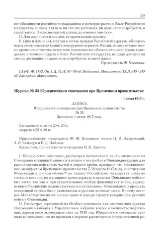 Журнал № 55 Юридического совещания при Временном правительстве. 1 июня 1917 г.