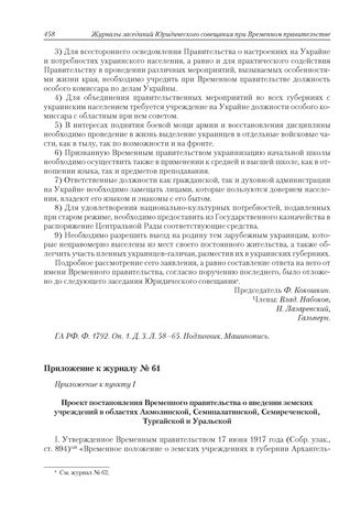 Приложение к журналу № 61. Приложение к пункту I. Проект постановления Временного правительства о введении земских учреждений в областях Акмолинской, Семипалатинской, Семиреченской, Тургайской и Уральской